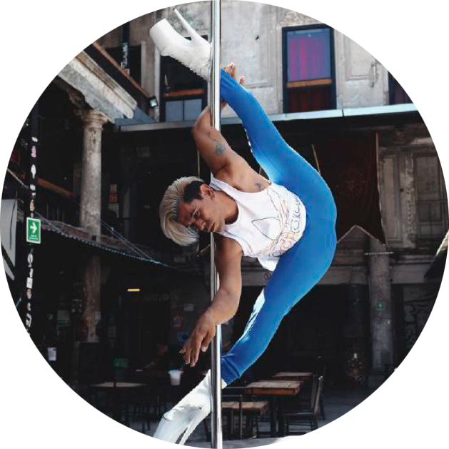 Joven, bailarín, iniciando fuerte como promesa de pole dance, sus clases son dinámicas, divertidas y con mucha técnica.